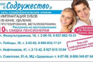 Врачи наших стоматологических клиник давно и эффективно проводят лечение зубов и их реставрацию, удаление, выполняют протезирование любой сложности (металлокерамика, цирконий, бюгельные протезы). Для нас важно завоевать доверие наших клиентов, и это происходит благодаря высокому качеству работы, внимательному отношению, индивидуальному подходу к проблемам каждого нашего пациента и, конечно, благодаря слаженной и командной работе сотрудников "Содружества"